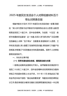 2025年度民主生活会个人对照检查材料五个带头对照表态版.docx