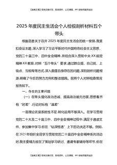 2025年度民主生活会个人检视剖析材料五个带头.docx