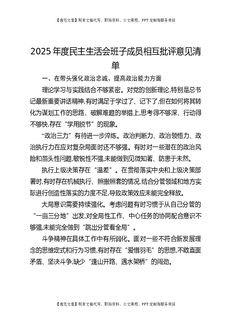 2025年度民主生活会班子成员相互批评意见清单.docx