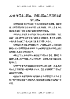 2025年民主生活会、组织生活会之间互相批评意见建议.docx