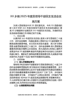 XX乡镇2025年度党员领导干部民主生活会实施方案.docx