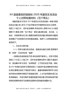 XX县县委组织部部长2025年度民主生活会个人对照检查材料(五个带头).docx