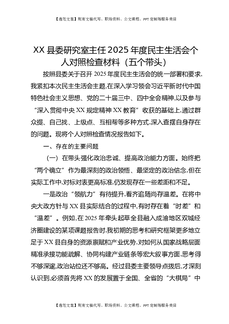 XX县委研究室主任2025年度民主生活会个人对照检查材料(五个带头).docx