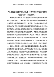 XX县政府办党组2025年度民主生活会对照检查材料(带案例).docx