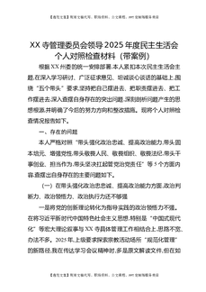 XX寺管理委员会领导2025年度民主生活会个人对照检查材料(带案例).docx