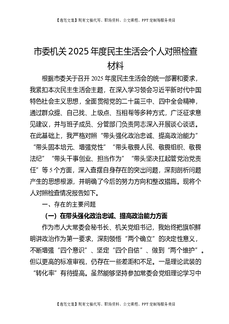 市委机关2025年度民主生活会个人对照检查材料.docx