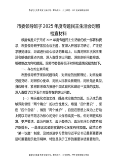 市委领导班子2025年度专题民主生活会对照检查材料.docx