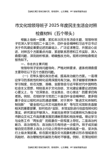 市文化馆领导班子2025年度民主生活会对照检查材料(五个带头).docx