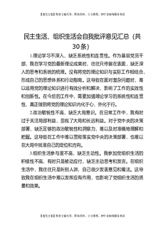 民主生活、组织生活会自我批评意见汇总(共30条).docx