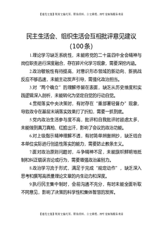 民主生活会、组织生活会互相批评意见建议(100条).docx