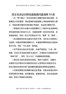 民主生活会对照检查查摆问题清单50条.docx