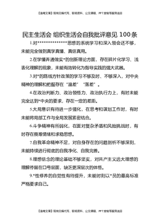 民主生活会组织生活会自我批评意见100条.docx