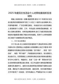 2025年度民主生活会个人对照检查剖析发言材料.docx