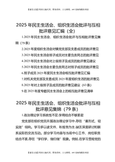 2025年民主生活会、组织生活会批评意见集锦(135页).docx