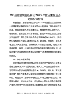 XX县检察院副检察长2025年度民主生活会对照检查材料.docx
