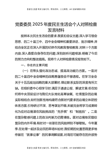 党委委员2025年度民主生活会个人对照检查发言材料.docx