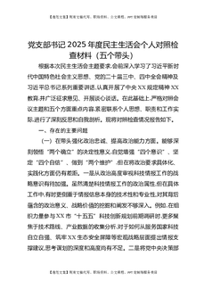 党支部书记2025年度民主生活会个人对照检查材料(五个带头).docx