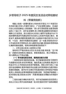 乡领导班子2025年度民主生活会对照检查材料(带案例剖析).docx