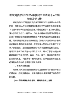 医院党委书记2025年度民主生活会个人对照检查发言材料.docx