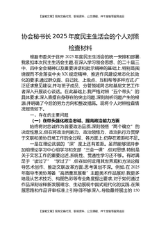 协会秘书长2025年度民主生活会的个人对照检查材料.docx