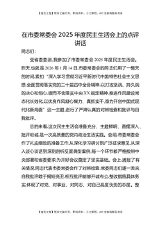 在市委常委会2025年度民主生活会上的点评讲话.docx