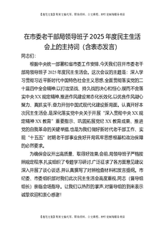 在市委老干部局领导班子2025年度民主生活会上的主持词(含表态发言).docx