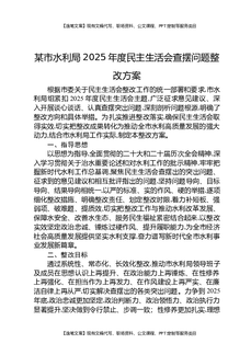 某市水利局2025年度民主生活会查摆问题整改方案.docx