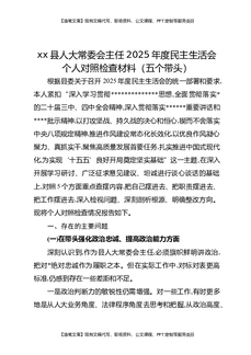 XX县人大常委会主任2025年度民主生活会个人对照检查材料(五个带头).docx