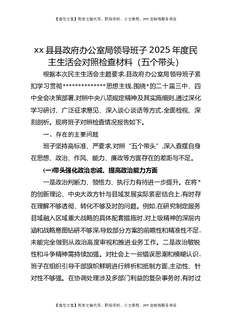 XX县县政府办公室局领导班子2025年度民主生活会对照检查材料(五个带头).docx