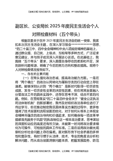 副区长、公安局长2025年度民主生活会个人对照检查材料(五个带头).docx