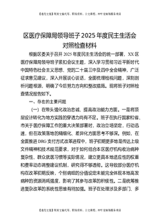 区医疗保障局领导班子2025年度民主生活会对照检查材料.docx