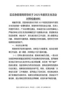 区应急管理局领导班子2025年度民主生活会对照检查材料.docx
