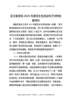 区文联党组2025年度民主生活会班子对照检查材料.docx