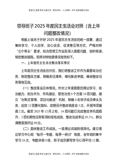 领导班子2025年度民主生活会对照(含上年问题整改情况).docx
