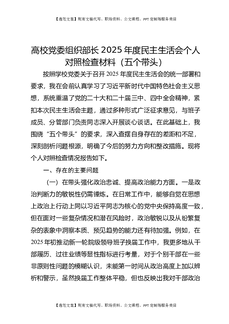 高校党委组织部长2025年度民主生活会个人对照检查材料(五个带头).docx