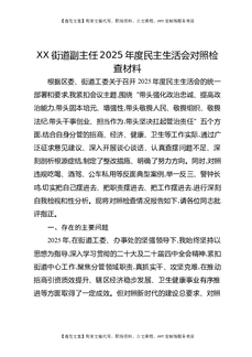 XX街道副主任2025年度民主生活会对照检查材料.docx