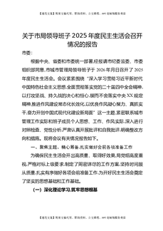 关于市局领导班子2025年度民主生活会召开情况的报告.docx