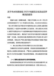 关于市水利局党组2025年度民主生活会召开情况的报告.docx