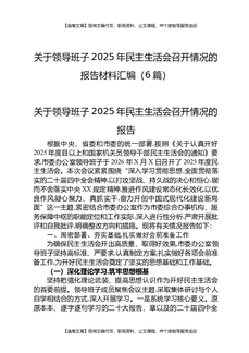 关于领导班子2025年民主生活会召开情况的报告材料汇编(6篇).docx
