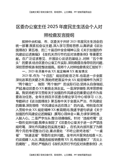 区委办公室主任2025年度民主生活会个人对照检查发言提纲.docx
