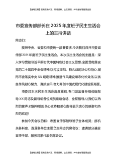市委宣传部部长在2025年度班子民主生活会上的主持讲话.docx