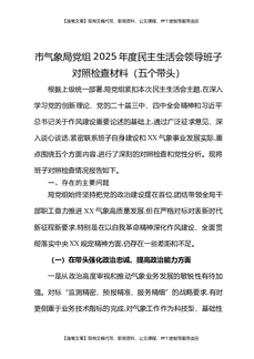市气象局党组2025年度民主生活会领导班子对照检查材料(五个带头).docx
