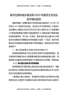 某市住房和城乡建设局2025年度民主生活会召开情况报告.docx