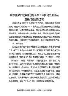 某市住房和城乡建设局2025年度民主生活会查摆问题整改方案.docx