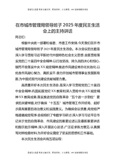 在市城市管理局领导班子2025年度民主生活会上的主持讲话.docx