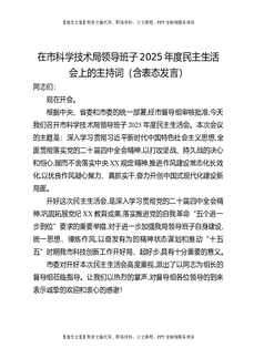 在市科学技术局领导班子2025年度民主生活会上的主持词(含表态发言).docx