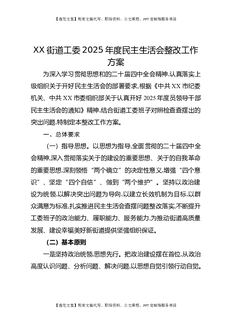XX街道党工委2025年度民主生活会整改工作方案.docx