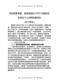 学校党委常委,宣传部部长2025年度民主生活会个人对照检查材料(五个带头).docx