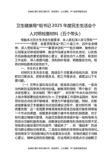 卫生健康局党组书记2025年度民主生活会个人对照检查材料(五个带头).docx