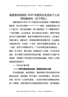 县委宣传部部长2025年度民主生活会个人对照检查材料(五个带头).docx